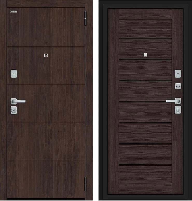 Надежная входная Дверь Браво Прайм/BChrome Almon/Wenge Melinga премиум класса по цене 39 507 руб. Большая толщина стали защитит от проникновения в ваш дом, квартиру или коттедж. Используется очень качественная фурнитура: замки, цилиндры, ручки, защелки. Покрытие и отделка двери изготовлено под внимательным контролем производителя. Дверь имеет долгий срок службы и гарантию.